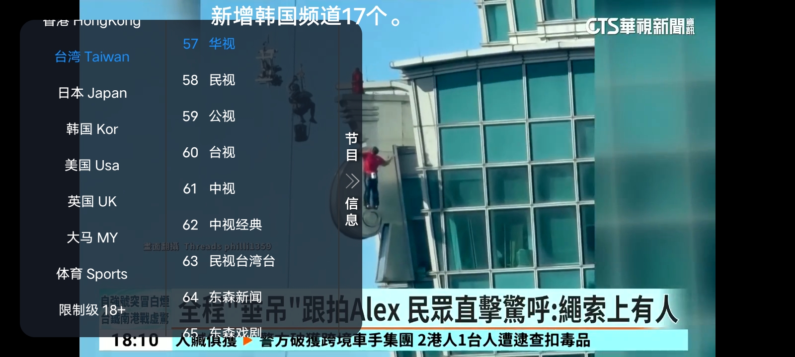 Geek TV是最新一款直播电视应用、支持所有网络收看、无需翻墙。 在任何安卓设备上都能轻松使用。最棒的是,它完全没有广告,而且提供的频道播放流畅,没有任何缓冲或卡顿。 Geek TV 提供超过 300 个频道,涵盖新闻、娱乐、体育、儿童、电影、音乐等内容。国际频道选择有限,目前仅提供来自、台湾、香港、日本、韩国、美国、英国和马来西亚的频道。 需要说明的是,此应用程序目前仅为第一版 (V1),这意味着您可能会遇到一些小错误或问题。不过,我们预计随着开发者不断更新,这些问题会逐渐得到改善。 限制级18+密码:8888